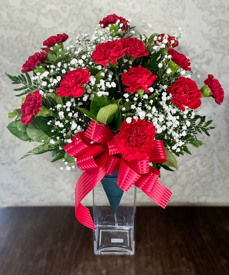 Dozen Carnation Cone | Gravesite Floral Tribute Red Bow