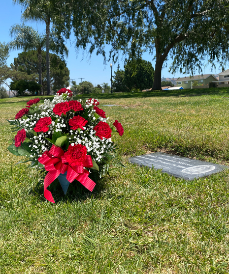 NOTE: Green Cemetery Cone is Included and required to maintain shape of design. Glass Vase is not included. This item is only available to existing gravesites at Queen of Heaven, Rose Hills, and Oakdale Cemeteries.