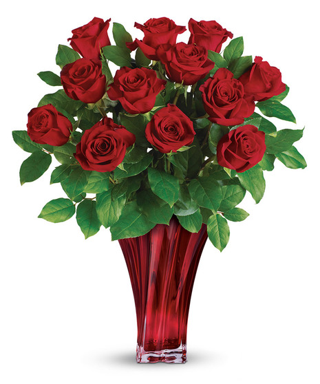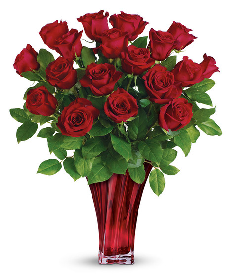 Romance them with roses! Hand delivered on Valentine's Day in a stunning art glass vase, these breathtaking blooms will sweep them off their feet in legendary style.