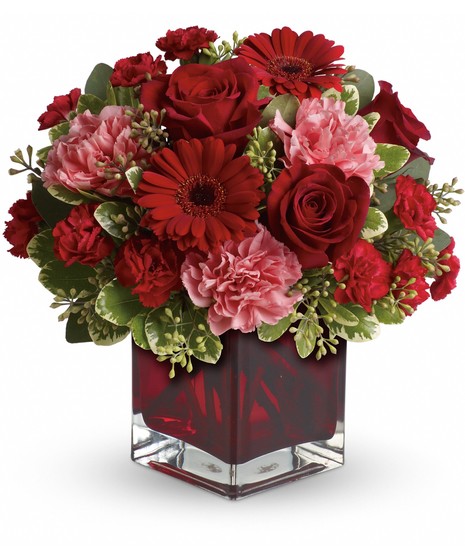 Together Forever Red Rose, Gerbera Daisy and Pink Carnation Cube